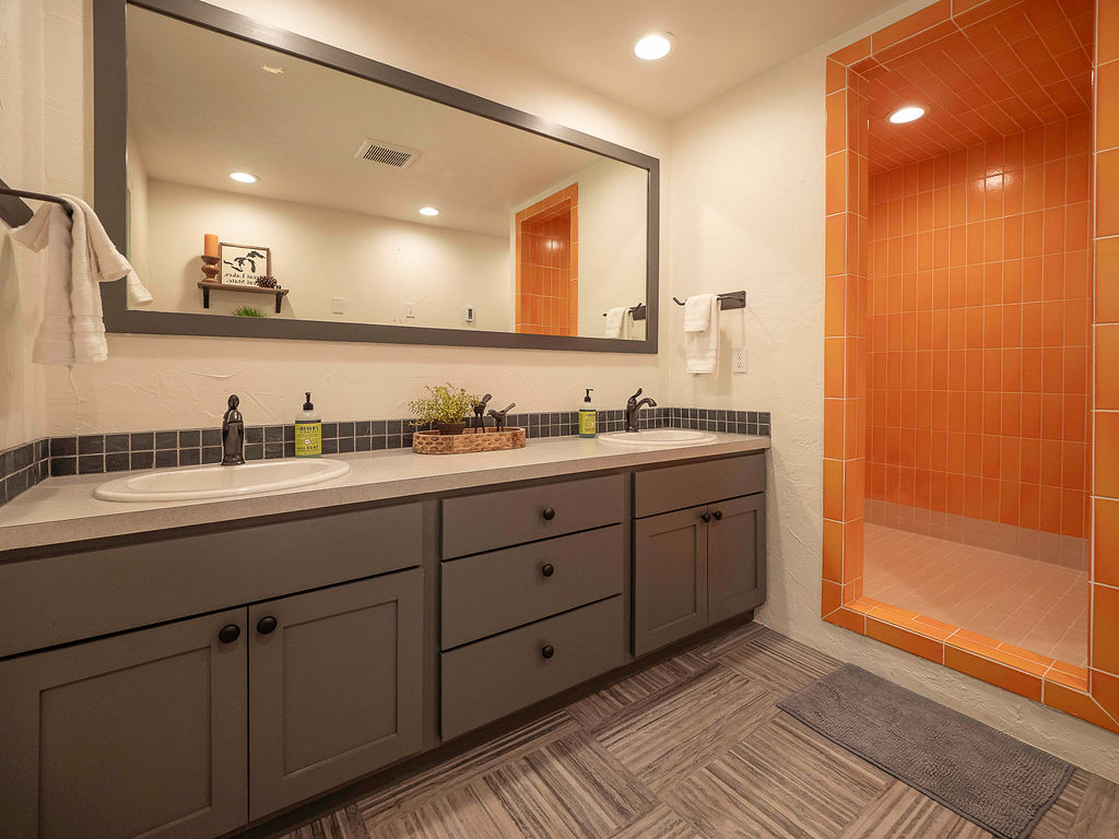 Two cozy bedrooms with queen beds. A bunk room with two full beds on the bottom and two twin beds on top. Includes 2.5 bathrooms for your comfort.